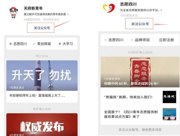 第一步:微信搜索并关注公共号“天府新青年”或“志愿四川”
